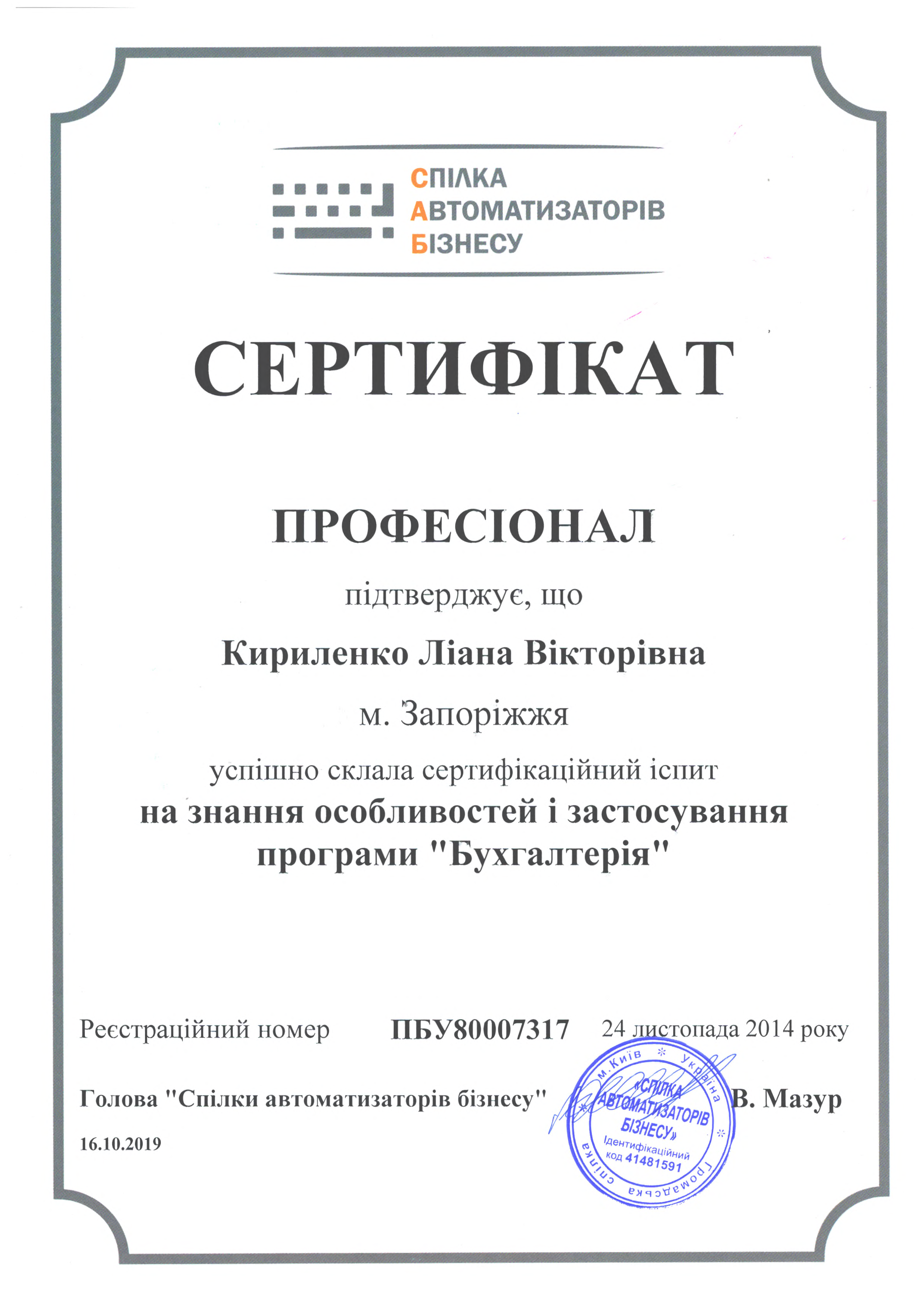 - Викладач ЦСН курсу «Використання прикладного рішення BAS Бухгалтерія»