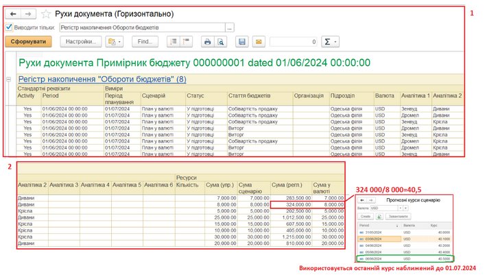 Існує можливість настройки вимоги обов'язковості наявності курсів для кожного періоду планування, тоді при вводі документа Примірник бюджету буде перевірка на наявність планових курсів в сценарії.