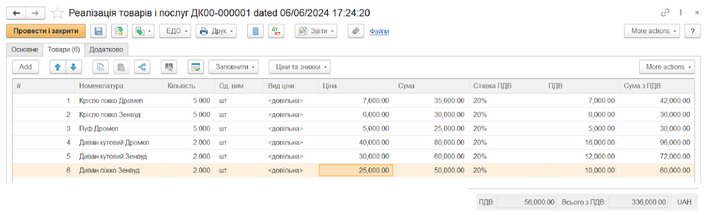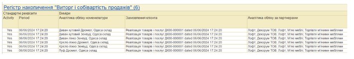 Реєструємо фактичні продажі: