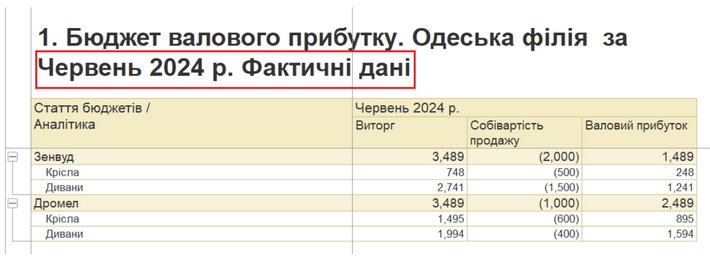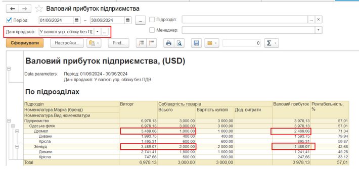 Звіряємо з даними оперативного обліку. Звіт Валовий прибуток підприємства: