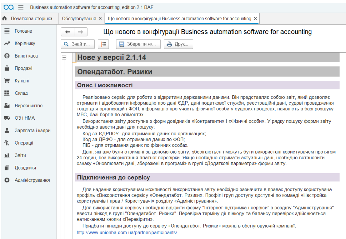 Більшість конфігурацій після оновлення версії виводять користувачам інформаційне вікно про виконане оновлення та зміни в новій версії.