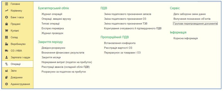 Рис 1. – Доступ до групового перепроведення документів