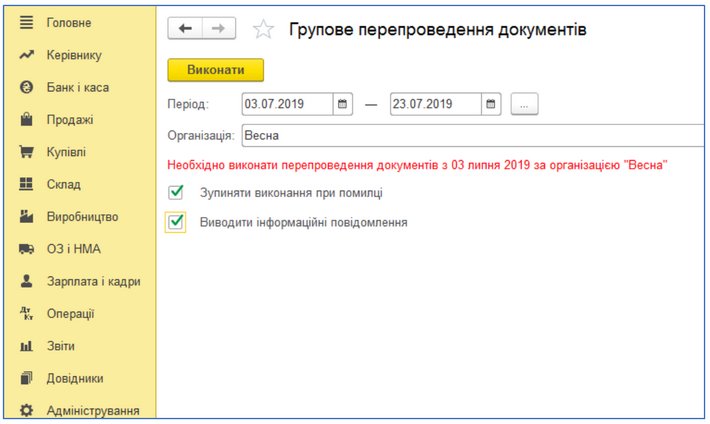 Рис 2. – Групове перепроведення документів