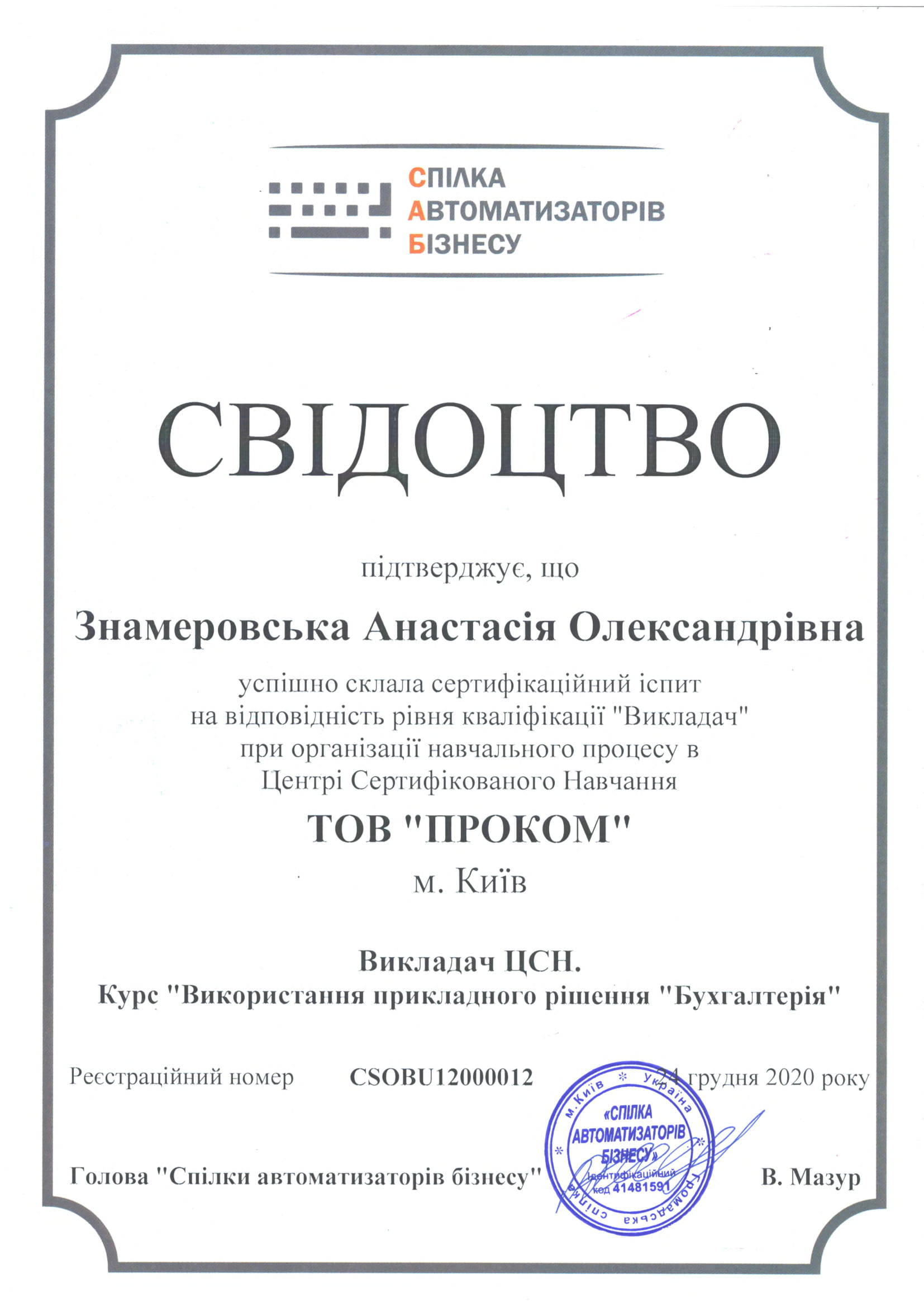 Сотрудник ООО «Проком» с 2019 року. Преподаватель курсов для пользователей.