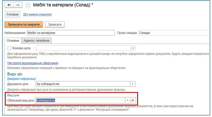 В картці складу зазначаємо «Обліковий вид ціни» – саме за цим значенням наперед визначено формування звіту «Відомість по товарах в цінах номенклатури».