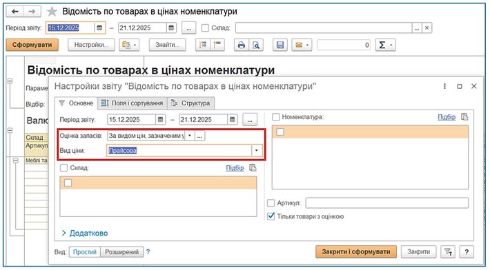 Якщо ж є необхідність отримати дані звіту за іншим видом ціни – необхідно зробити налаштування перед формуванням звіту.